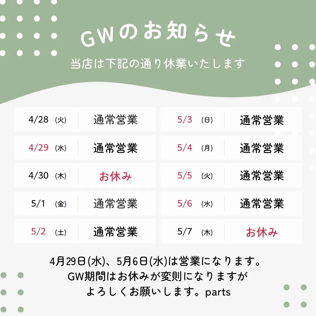 GW期間のお休みのお知らせ